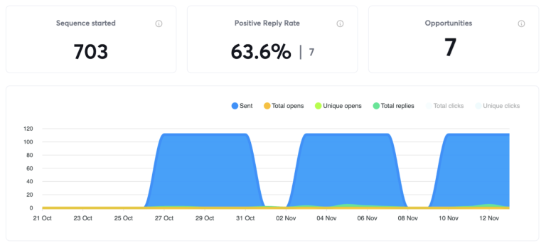 • The campaign achieved an astonishing 63.6% Positive Reply Rate across the sequence, resulting in 7 direct positive replies.