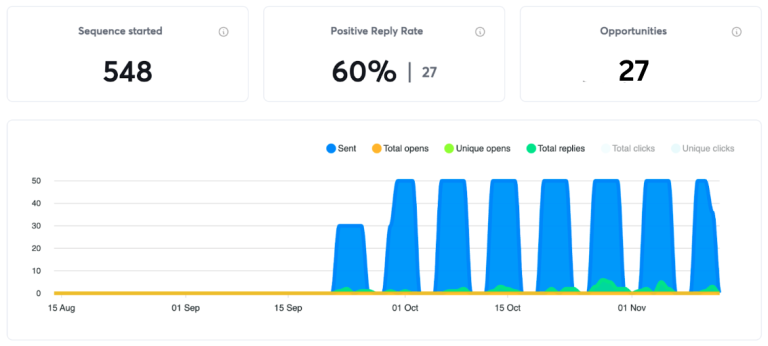 • The consistent sending volume, coupled with the AI-powered behavioral hooks, demonstrates a repeatable model capable of delivering a reliable flow of qualified leads for sophisticated, high-ticket offerings in a fast-paced market environment.