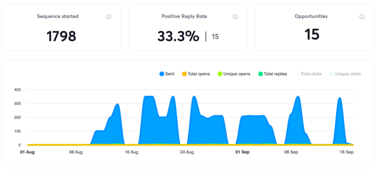 The commitment to deep personalization, even at high volume, generated exceptional engagement. The campaign achieved a strong 33.3% Positive Reply Rate, resulting in 15 positive replies.
